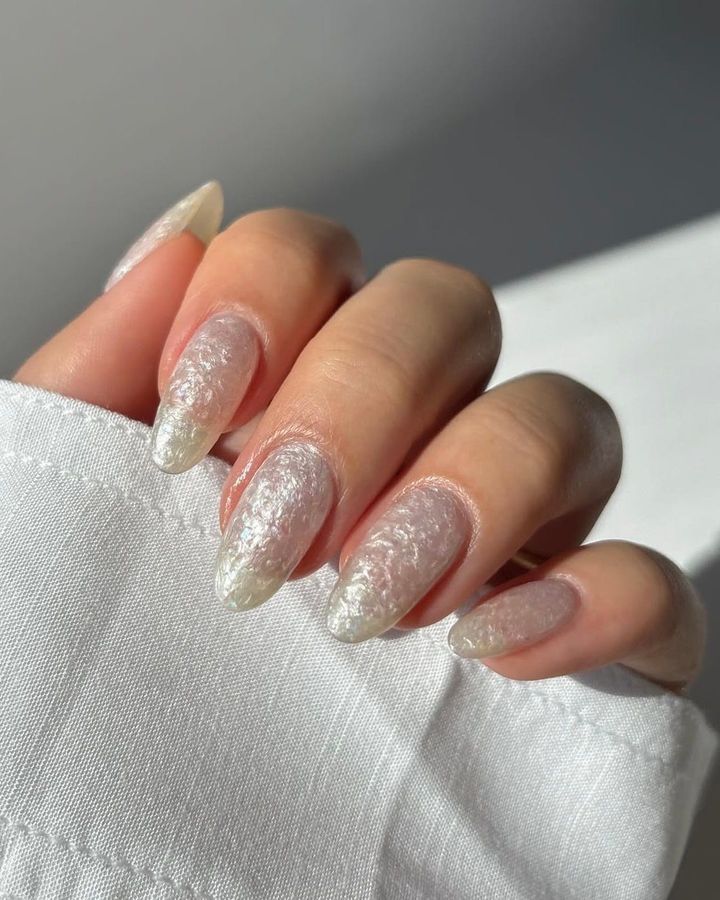 ヌードベースの根元にほんのりオーロラフレークをのせて。簡単なアレンジながら、その効果は抜群。