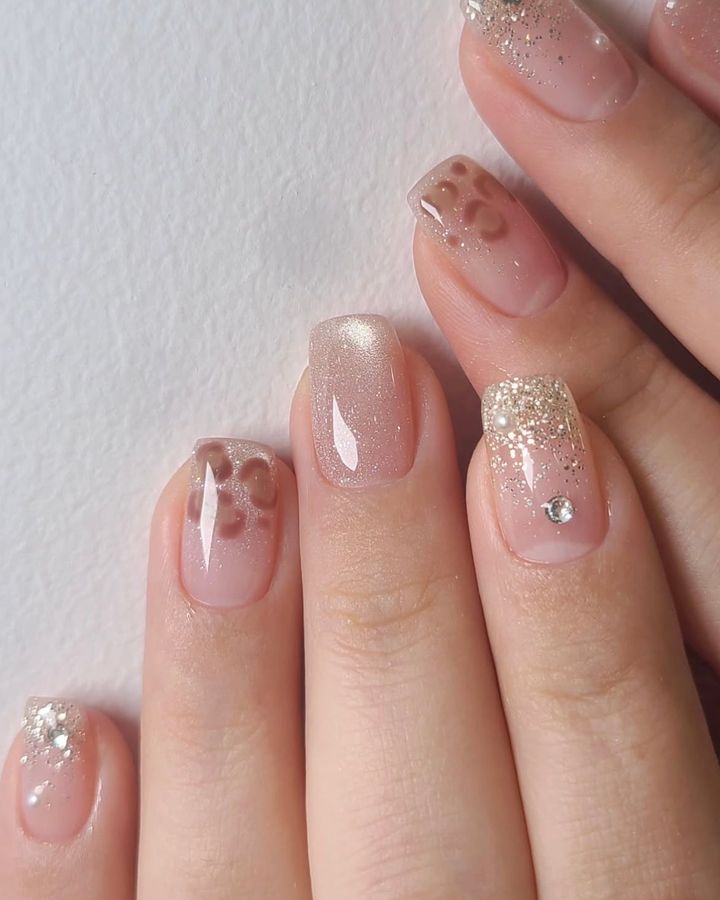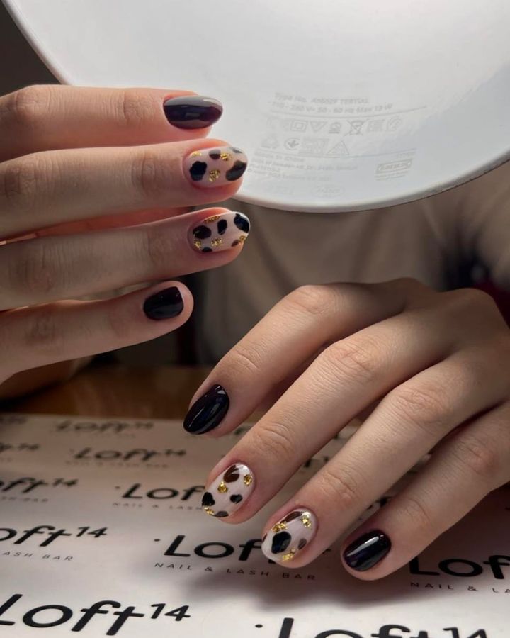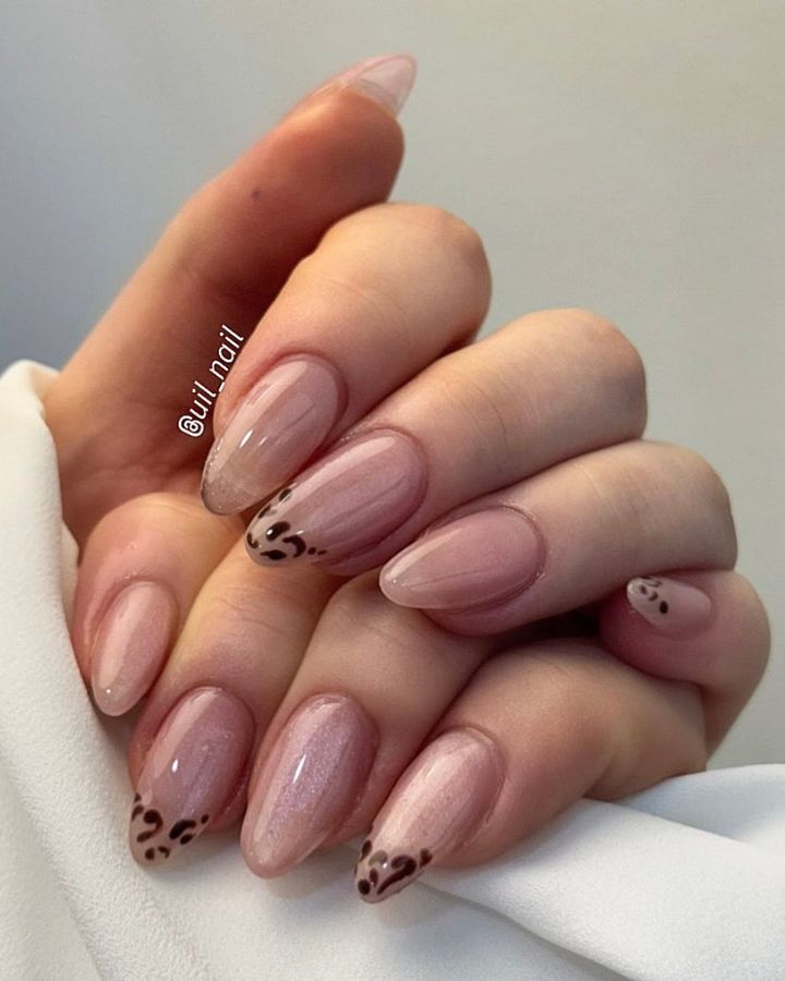 いつもの清楚ネイルも、レオパード柄をレイヤードすれば冬らしい装いに。