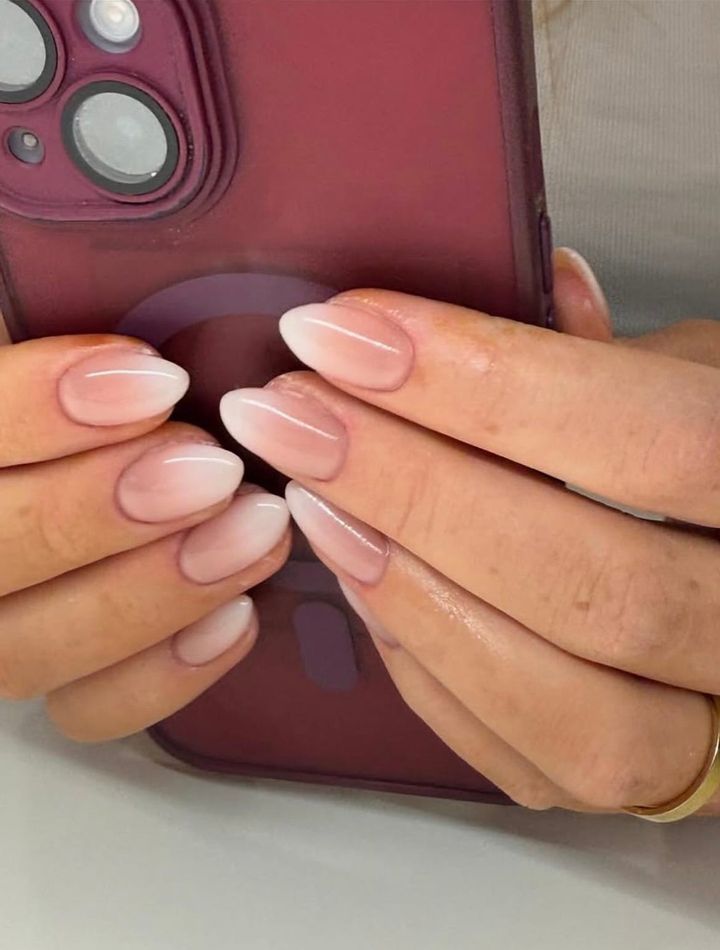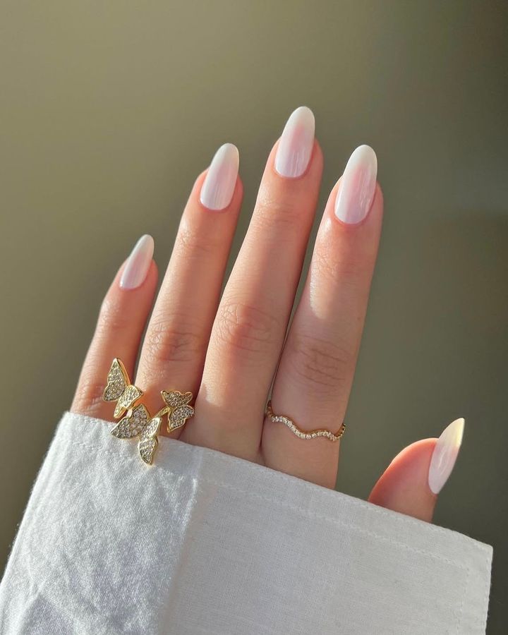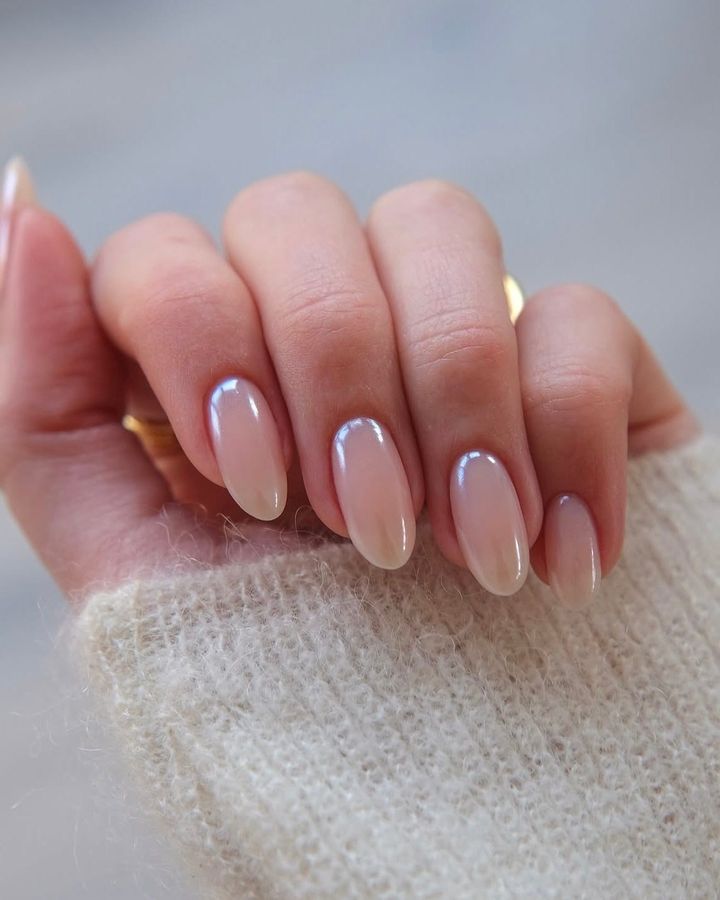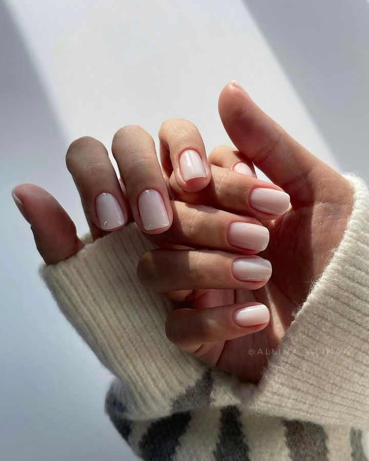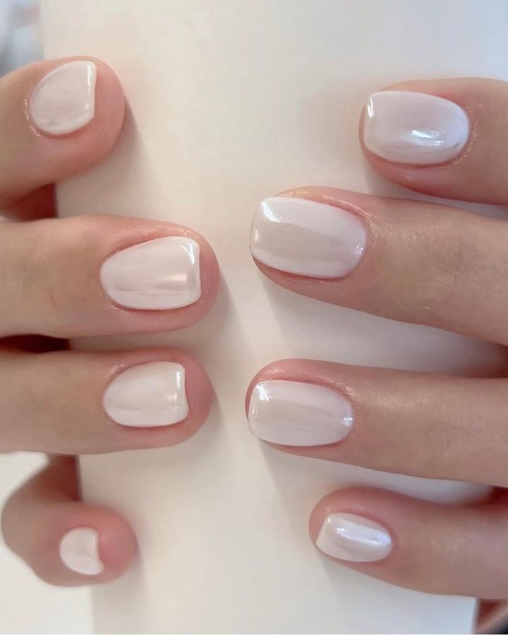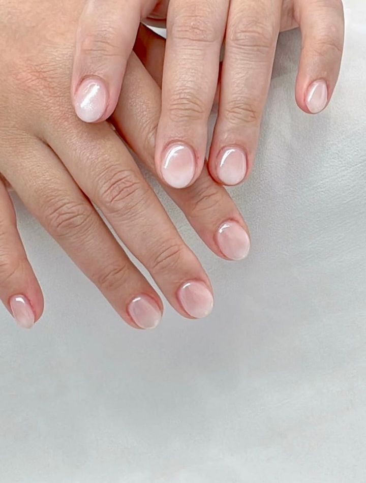 ミルキーなヌードフレンチが清潔感たっぷり。