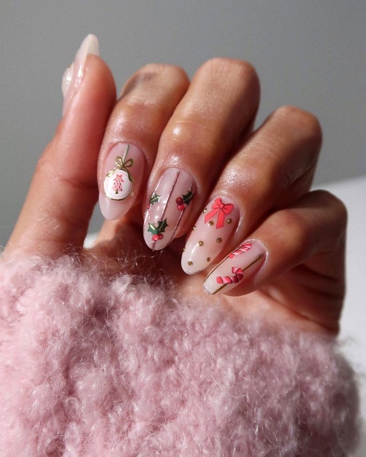 ホリデーシーズンにぴったりのネイルデザインは華やかに楽しんで。モチーフづかいもおすすめ。