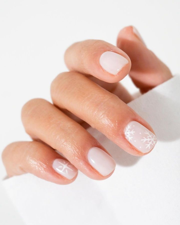 スノウフレークモチーフも冬ネイルならでは。