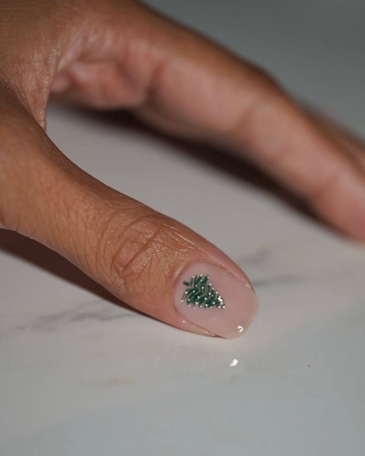 ツリーをイメージしたシンプルなネイルは、さりげなくホリデー感を演出。