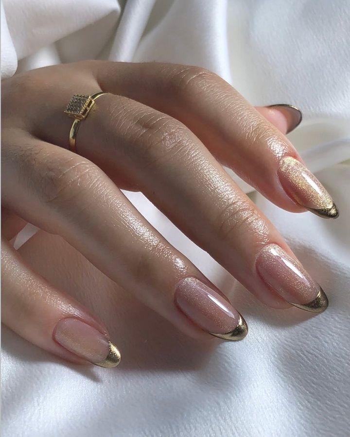 ゴールドクロームのフレンチネイル。マグネットの輝きもゴージャス。