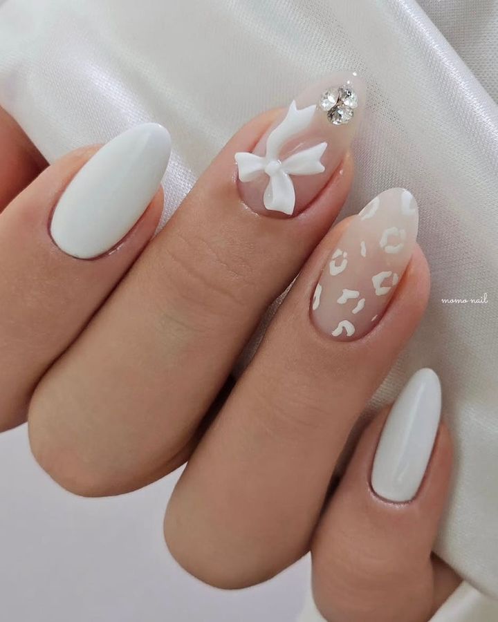 ホワイトオンブレネイルとのミックスで、アニマル柄のインパクトをチューニング。