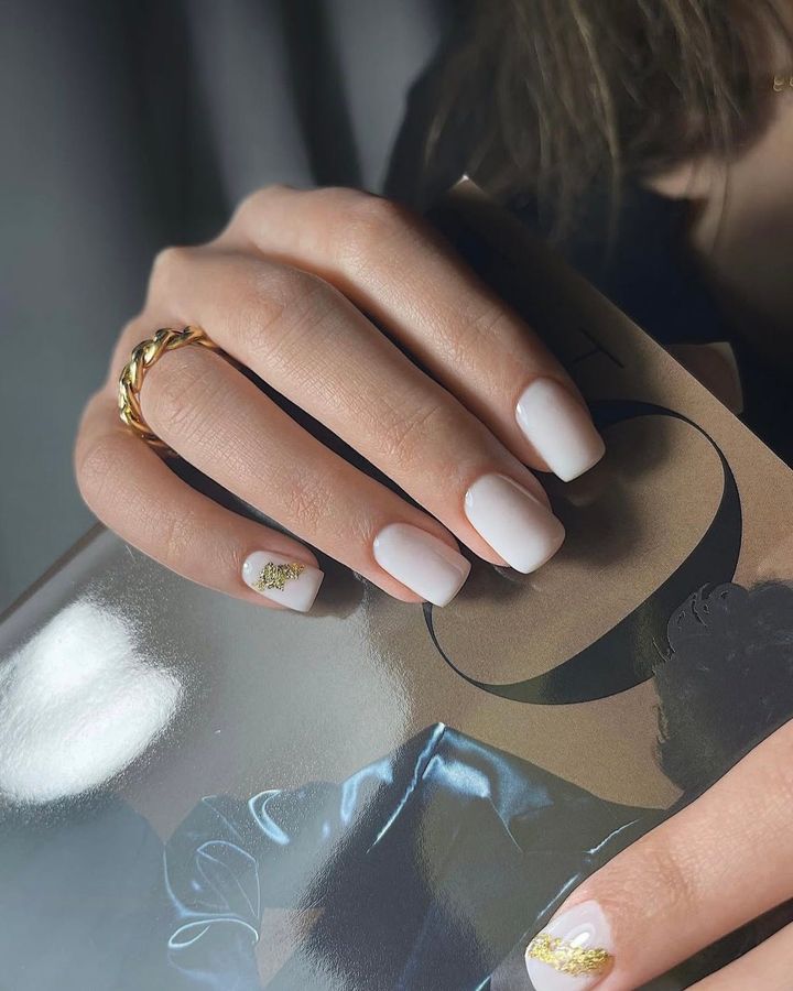 ショートネイルのホワイトオンブレは、さらにピュアな雰囲気に。