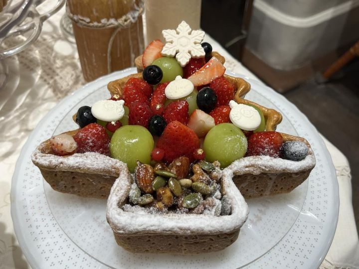 口どけなめらかなホワイトチョコ風味のカスタードに、フルーツリースタルトと雪の結晶のオーナメントが、聖なる夜を演出します。