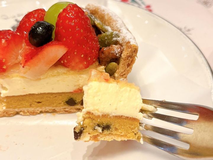チョコクリームがふんわり口に広がります。ミルキーな味わいで軽さがあるのでぺろっと食べられます。ベリーやジャムの酸味がアクセントになり、大人も子どもも大満足するチョコタルトでした。