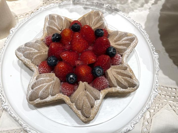 チョコレートカスタードと自家製の甘酸っぱいジャムが、夢見る心地な聖夜に瞬く星のようにきらびやかなタルトです。