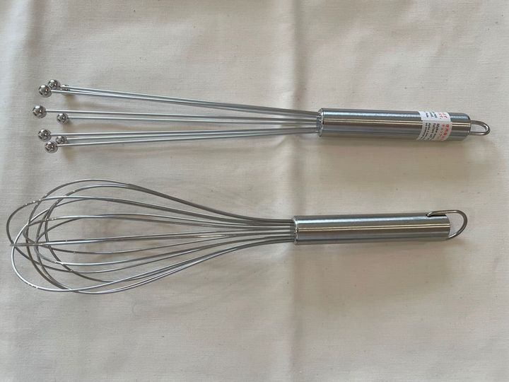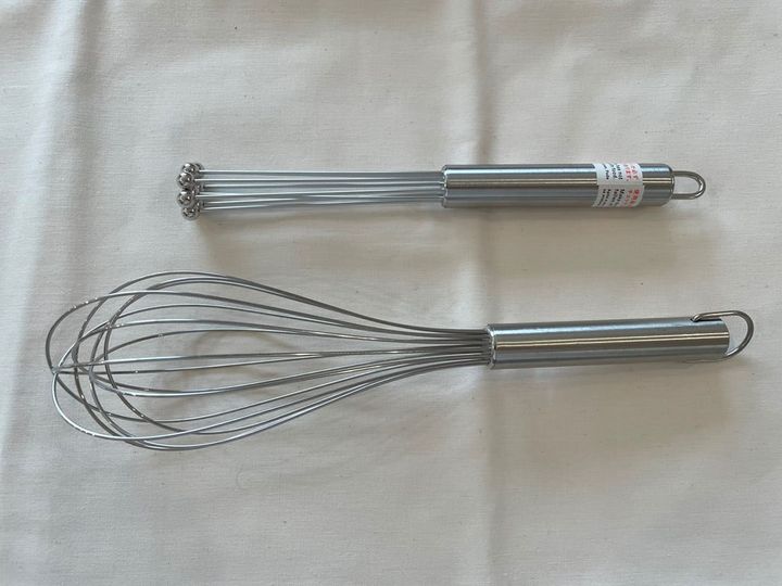 こうして並べてみると、ダイソーのステンレス泡立て器がコンパクトなのが分かりますね。