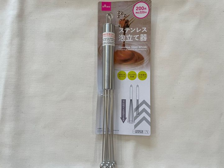 わが家はよく、朝食にホットケーキや蒸しパンを作るのですが、そのときに使うのが泡立て器。でも、泡立て器って意外とかさばるし、ワイヤー部分が洗いづらいのがちょっとしたストレスなんですよね。かといって菜箸だときれいに混ざらないことも多くて…。そんなときに見つけたのが、ダイソーの「ステンレス泡立て器」。実はこれ、コンパクトに収納できて、通常の泡立て器と同じくしっかり混ぜられるという、まさに泡立て器と菜箸の“いいとこどり“なアイテムなんです。どれだけ使いやすいのか、実際に試してみました!
