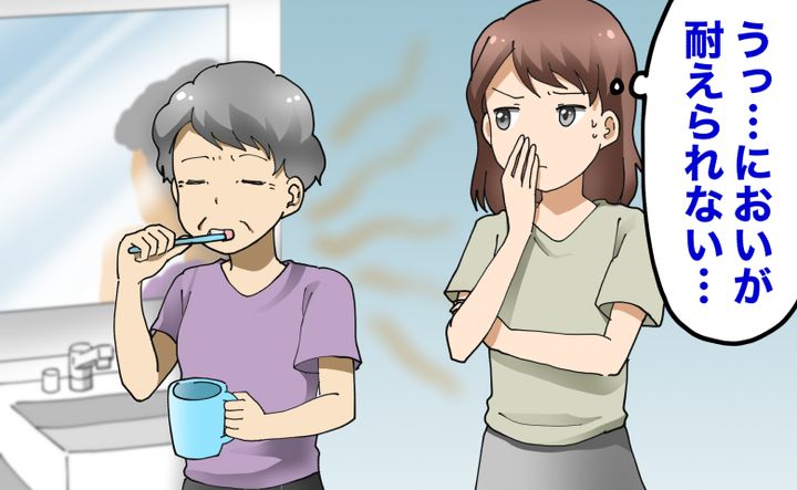 そんなある日、義母が歯磨きをしていたときのことです。義母は入れ歯を使っていて、その影響もあるのか、以前から少し口臭が気になっていました。さらにそのときは、歯磨き粉の独特な香りと混ざり合い、より強いにおいに感じられて、思わず吐き気に襲われてしまったのです。