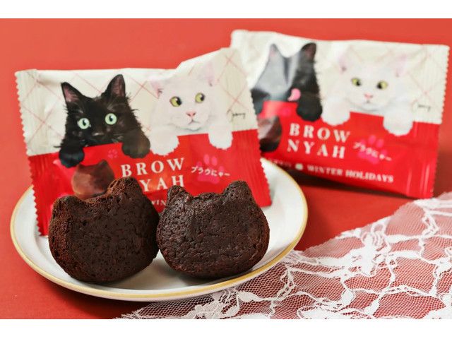 “黒ねこ”に見立てた手のひらサイズのねこ型ブラウニーです。バターと北海道産の生クリームを使用し、まろやかなチョコの味わいとしっとりとした口溶けをお楽しみいただけます。 隠し味に忍ばせた、コーヒーとナッツペーストがコクを引き出します。毎年冬に登場する大人気スイーツです。