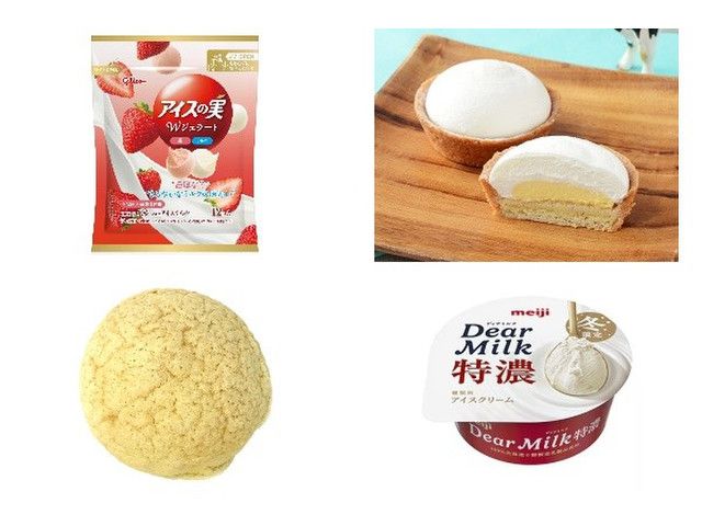 3. 今週新発売の生クリームまとめ!『アイスの実 Wジェラート 苺・ミルク』、『× Milk 白いクリームタルト チーズクリーム』など♪