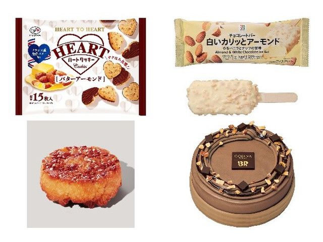 今週新発売のアーモンドまとめ!『ハートクッキー バターアーモンド』、『白いアーモンドチョコバー』など♪