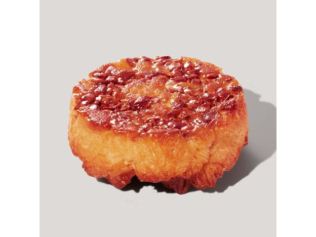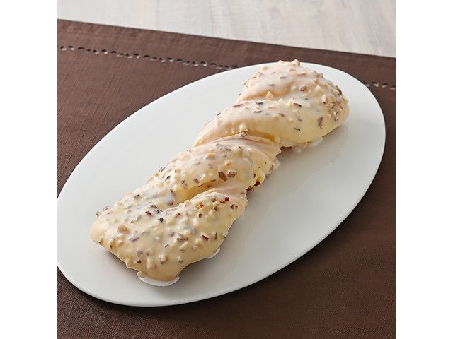 アーモンド風味のビスケット生地を被せたデニッシュに、アーモンドをつけて焼き上げ、仕上げにシュガーコーティングをしました。