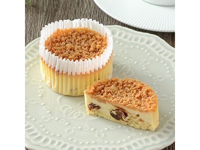 クリームチーズの素材を生かし、スライスアーモンドとレーズンのアクセントをきかせたベイクドチーズケーキです。