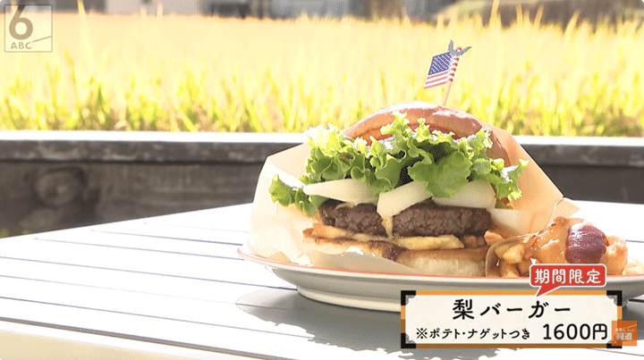 【動画】今回も“おいしい寄り道”をちゃっかり楽しむ2人。大阪・太子町の道の駅ではシャインマスカットを、奈良・葛城市のカフェレストランでは、アメリカンなハンバーガーに“梨”を合わせた、その名も「梨バーガー」を堪能!