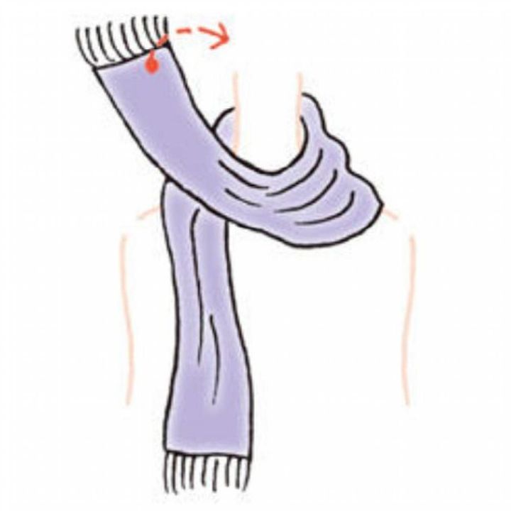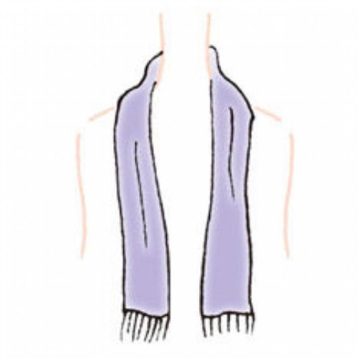 【1】ストールを首にかけ、左右が同じ長さになるように調節する。