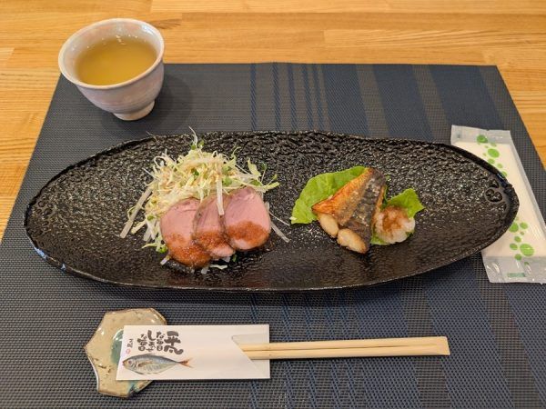 食事の前にアレルギーなどないか聞いてくれて親身に対応してくれて嬉しい★ 女将さんが一人で切り盛りされているため時間があるかも気にかけてくれましたよ。 まずは鶏ハムと塩サバがのった平皿の登場。 そして次々とお料理が出てきます。