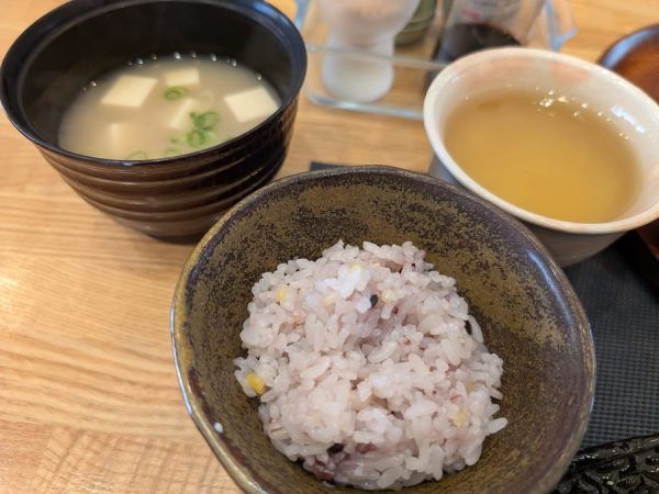 そして雑穀米にお味噌汁。 お野菜をたっぷり使ったランチはボリューム満点。