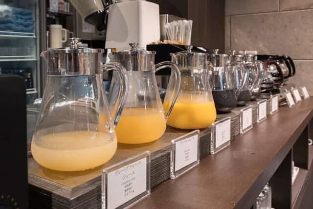朝食の時間は2軒のホテルの宿泊者専用となるため、通りに向いた入口はクローズになっていますが、「東急ステイ京都三条烏丸」のアプローチ側にある入口を利用します。時間は6時30分から10時(L.O.9時30分)まで。料金は¥2,750(税込)です。