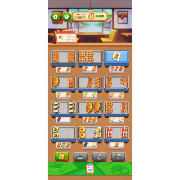 私は、ソート(仕分け)パズルゲームが好き。以前は、コンビニの棚に商品を並べていくゲームで遊んでいたけど、今は『グリルソート』推し。
