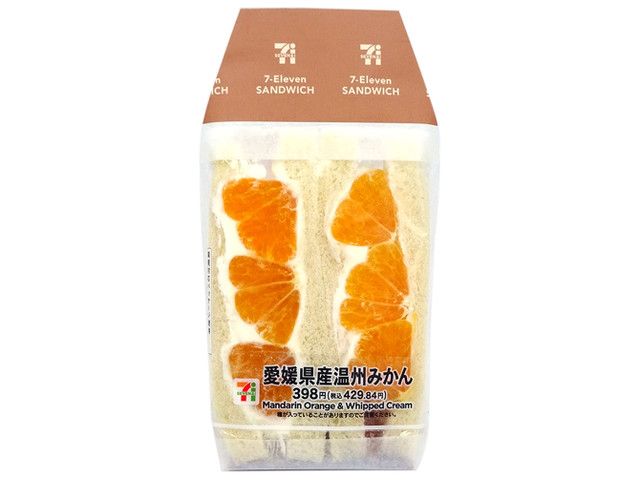 フレッシュな愛媛県産温州みかんがごろっと入ったフルーツサンドです。マスカルポーネ入りクリームで食べ進みの良い仕立てです。