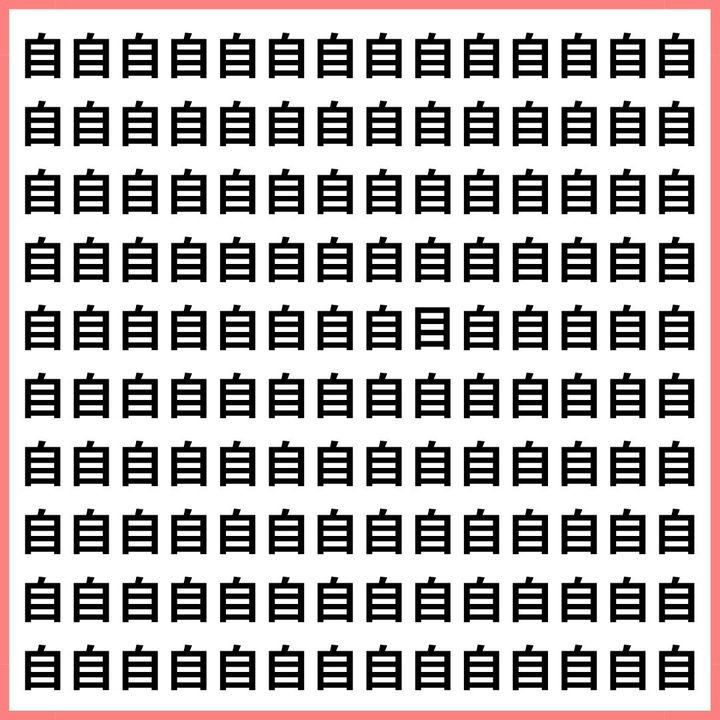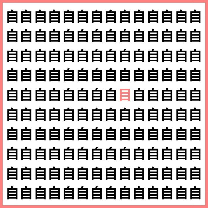 たくさんの「自」の中に、1文字だけ違う漢字が混ざっています。
