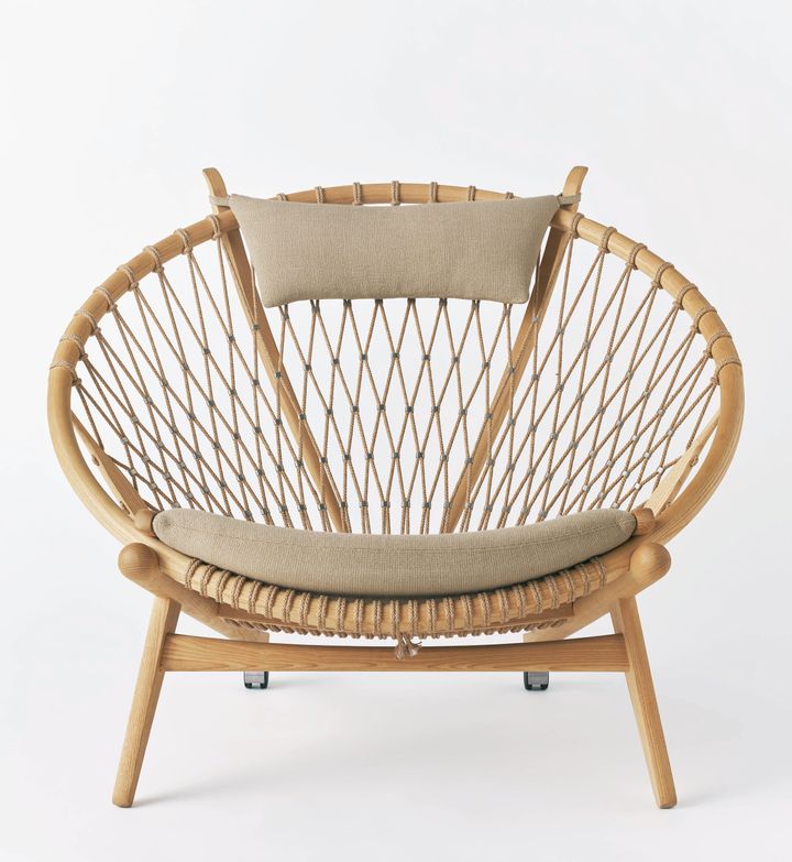 最近、心惹かれたのは《ザ・フラッグハリヤードチェア》。ウェグナーが砂浜で娘を遊ばせている間、ふと思いついてビーチの砂を固めてくつろげる角度を見いだし、つくったんだそうです。たまたまデンマーク市内の店で見つけて座ってみたら、なんだこれは!という初めて体感する心地よさでとても体が休まった。浜辺でウェグナーがくつろいでいた光景が目に浮かびます。ディテールも素敵です。