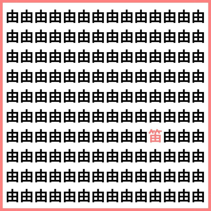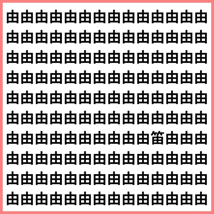 たくさんの「由」の中に、1文字だけ違う漢字が混ざっています。
