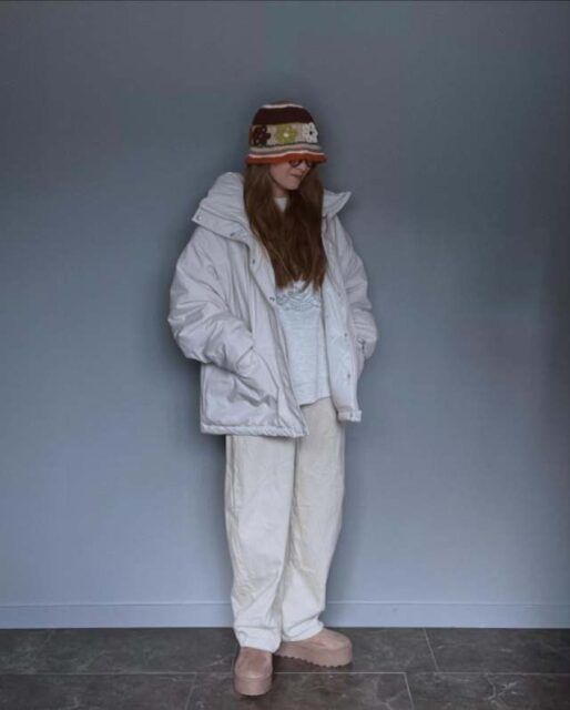 「ダボッとしたコーデュロイパンツ」はムートンブーツと相性バツグン。起毛素材のコーデュロイがスウェード生地のムートンに馴染み、シーズンムードにマッチ。腰まわりから足元まで暖まる着こなしなので、冬のお出かけにぴったりです。