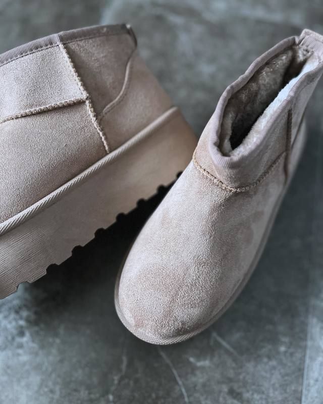 まず2025-2026冬に流行っているムートンブーツはショート丈かつ厚底タイプ。色はベージュ・キャメル・ブラウン・黒など定番色が注目を集めています。