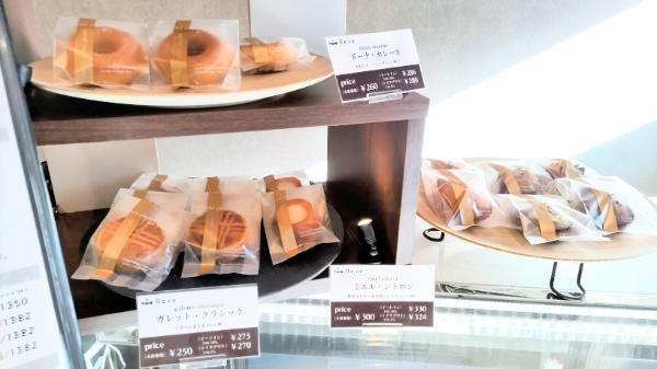 フィナンシェは6種類くらい作られていて、季節によって変えたり、新商品もチャレンジしているんだそうです。木の箱に入ったディスプレイがおしゃれです!こちらも、イートイン・テイクアウト、どちらもOKです。他にもガレットなどの焼き菓子もあります。フィナンシェのギフトBOXもありました。