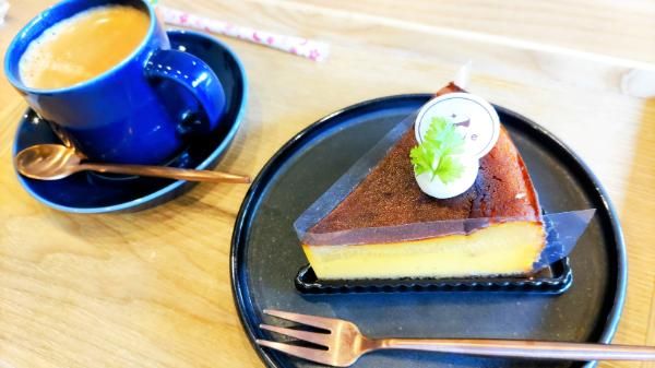 見た目が美しいブルーベリーがトッピングされたレアチーズタルトの「ミラージュ・ルナ」(680円)は、ブルーベリーの香りが引き立っています。ふわっとしたレアチーズと、サックリしたタルト生地で、食感も楽しめます。珍しいカボチャのバスクチーズは、生地がグルテンフリーで、とっても滑らか。カボチャとチーズがバランスよく合わさっています。