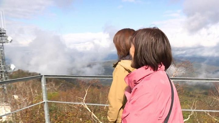 赤く色づき始めた木々を横目に頂上に向かうと…。