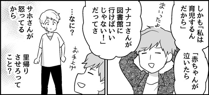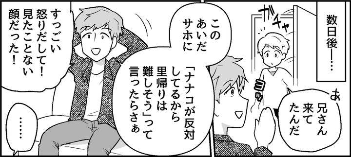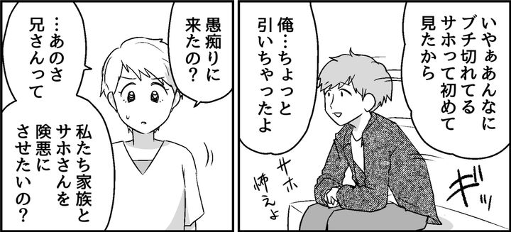 サホさんが怒ったことを私に愚痴って、いったい何をしたいの……? 「サホ、怖えよ」とへらへらと笑う兄を見て、私は心底呆れました。そしてサホさんの言ったことをそのまま私に伝える、デリカシーのなさにも情けなくなったのです。