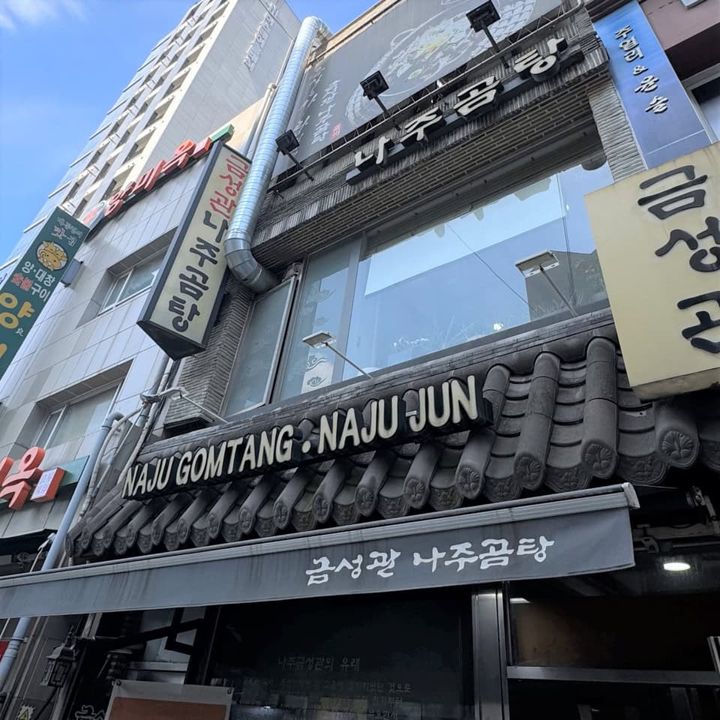 終盤には、さっぱりランチを食べに『錦城館羅州(クムソングァンナジュ)コムタン』へ。12:00前に行ったら待たずに入れたけど、出てくるときは大行列ができていたので、早めに行くのが絶対オススメ。テーブルに置いてあるキムチも絶品でした! 後から知ったがマッコリ飲み放題らしいです(笑)。残念! 飲みたかった!
