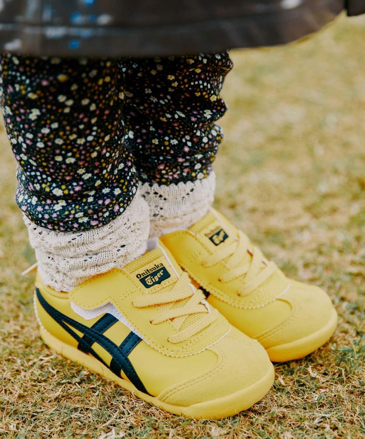 Mom’s Instagram:@tami_and_fumi一枚でサマになる、落ち着いたカラーのジャケットワンピに、花柄のレギンスとレースの靴下を合わせた着こなし上手なtamiちゃん。足元は、圧倒的な存在感を放つ『オニツカタイガー』メキシコ66のイエローをオン。ちょっぴりレトロな雰囲気のスニーカーで、ぐっとこなれ感もアップし、遊び心も感じられるスタイルに♪kids item>>>&palのジャケットワンピ、ZARAのトップス、misha&puffのレギンスと帽子、mont-bellのバッグ