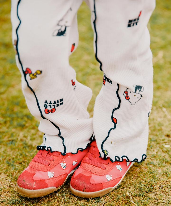 Mom’s Instagram:@y___nr___sカジュアルなスウェットにキュートなフリルの付け襟をオンして、おしゃれ度高めなふうかちゃん。裾のフリルがポイントのパンツと真っ赤なスニーカーは、大好きなキャラクター〈ハローキティ〉をセレクト。可愛いディテールとキャラクターを取り入れたハッピーな休日スタイル。kids item>>>melted butterのスウェット、バースデイで購入したボトムス、soft cheeseの付け襟