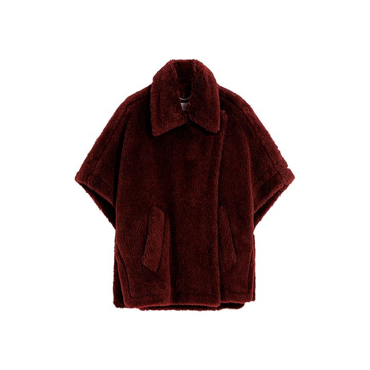 保温性の高いウールやシルクで仕立てた独自のフェイクファー、テディベア素材のケープ。スタイリングのアクセントになる、トレンド感ある色合いです。ケープ¥326,700[阪急うめだ本店限定](Max Mara/マックスマーラ ジャパン) Hearst Owned