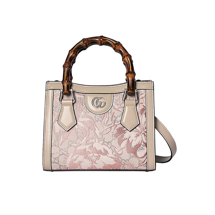 日本が誇る伝統工芸、西陣織の高度な職人技とブランドの芸術性が融合するオリジナルのテキスタイルには、HOSOOのシグネチャー生地「ペタル」の技法を駆使。西陣織特有の銀を用いた箔を多層構造の中に織り込むことで、グッチの「フローラ パターン」と「GGパターン」を気品漂う華やかな雰囲気に仕上げています。リミテッドエディションとして登場するのは、“グッチ バンブー 1947”と“グッチ ダイアナ”、2つのアイコンバッグ。サイズやカラー違いで10アイテムがお目見えします。