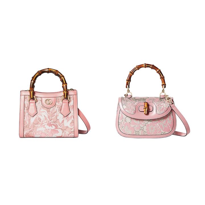 「光と影」「静と動」という、2つの相反する要素を織り表した洗練を極めたテキスタイルが印象的。カラーはアイボリーやローズ、コッパーと、ぬくもりを感じる上品な3色展開です。バッグ〈右〉“グッチ バンブー 1947”[W21×H15×D7]¥831,600 〈左〉“グッチ ダイアナ”[W20×H16×D10]¥607,200(2点共Gucci/グッチ クライアントサービス) Hearst Owned