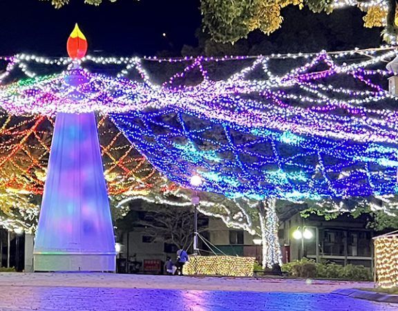 ★約10万球 ★西条中央公園 ★冬の風物詩となった東広島のイルミネーション。今年はLEDを8万球から10万球にアップしています。12月13日(土)・20日(日)17:00~「あったかゴチうどんプロジェクト」を実施。大人は500円~、子どもと学生は無料で、うどんを食べられるプロジェクトです。両日とも16:00から「クリスマスマーケット」も開催されます。障害者施設の人、ママさん作家、留学生などと協働し、食品や雑貨を含むお店を多数出店して盛り上げ、誰もが楽しめるマーケットを目指しているそう。 ★日時/~2026年1月12日(日)17:00~21:00 ★場所/西条中央公園 (東広島市西条栄町1214-45) ★問い合わせ/TEL:082(431)3780 東広島ロータリークラブ