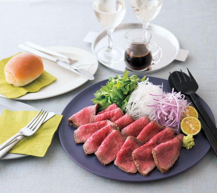 おせちや来客の準備など、何かと忙しい年末年始。そんなときに、かたまり肉料理を一品ストックしておけば、急なおもてなしにも役立ちます。ここでは、料理研究家・管理栄養士の岩﨑啓子さんに、ごちそう感のある「和風ローストビーフ」と、和風ローストビーフで作るアレンジレシピ2品を教えていただきました。