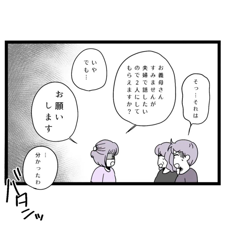 3. 夫婦の話し合いを避け義実家に逃げ込む夫に幻滅。義母を締め出し2人きりで向かい合い詰め寄る。夫は母依存|ママ広場マンガ