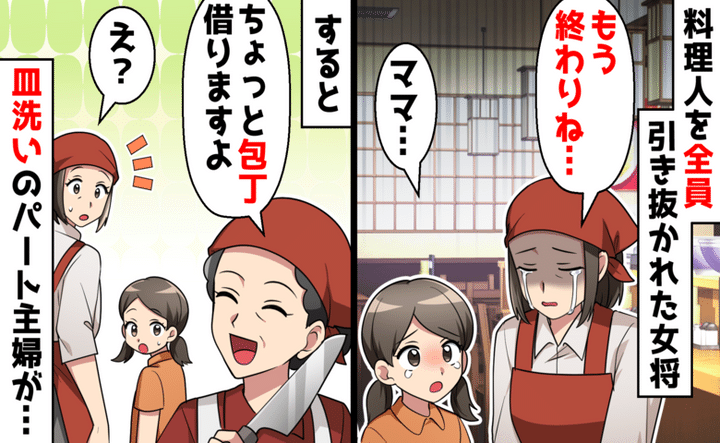 さらにパートの1人が笑顔で言いました。「女将さん、少し包丁をお借りしますね。実は前職で調理の仕事をしていたんです。できる限り頑張ります!」。