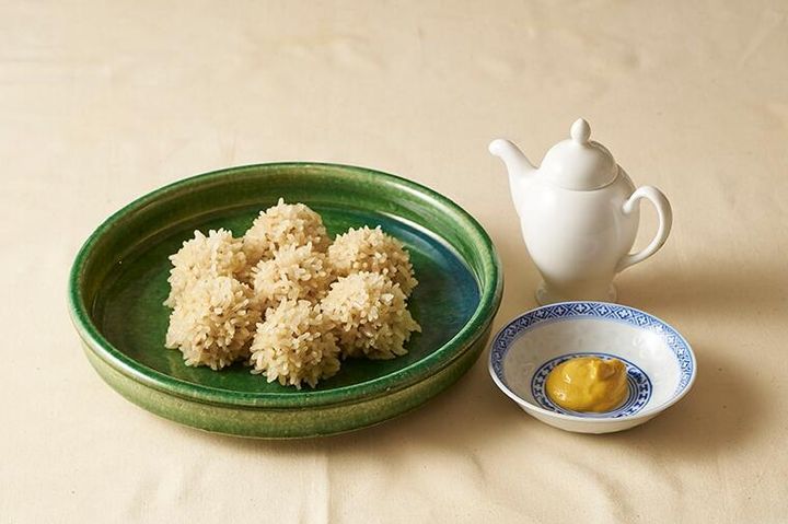 蒸籠(せいろ)の蓋を開けた瞬間、白く透き通ったもち米がパッと立ち、まるで花が咲いたかのように映る。真珠の輝きを思わせることから「真珠丸子(チェンジュワンズ)」と名づけられた点心だ。本場では、真珠の別名「珍珠」を冠して「珍珠丸子」と呼ばれることが多いが、湯島聖堂のレシピ名はわかりやすく「真珠丸子」と記されている。