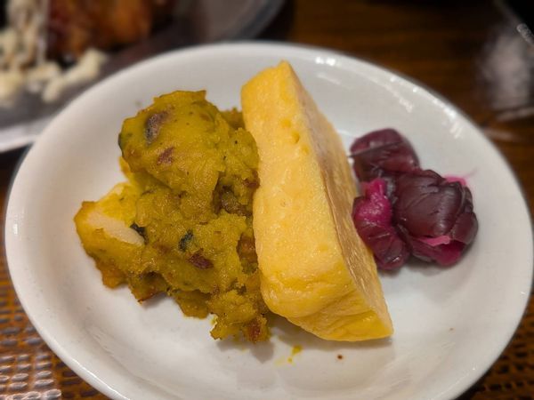 共通の小鉢はカボチャのサラダと卵とお漬物