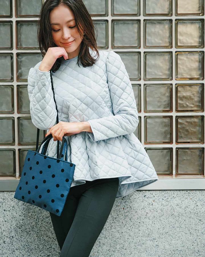 ⑥きちんと感と高級感たっぷりな「ドット柄トートバッグ」