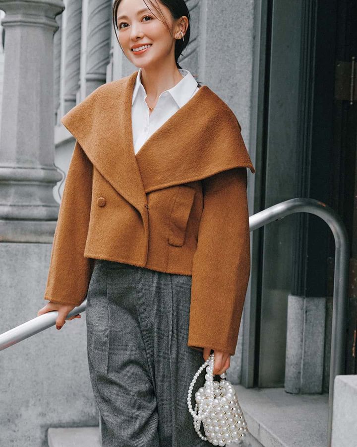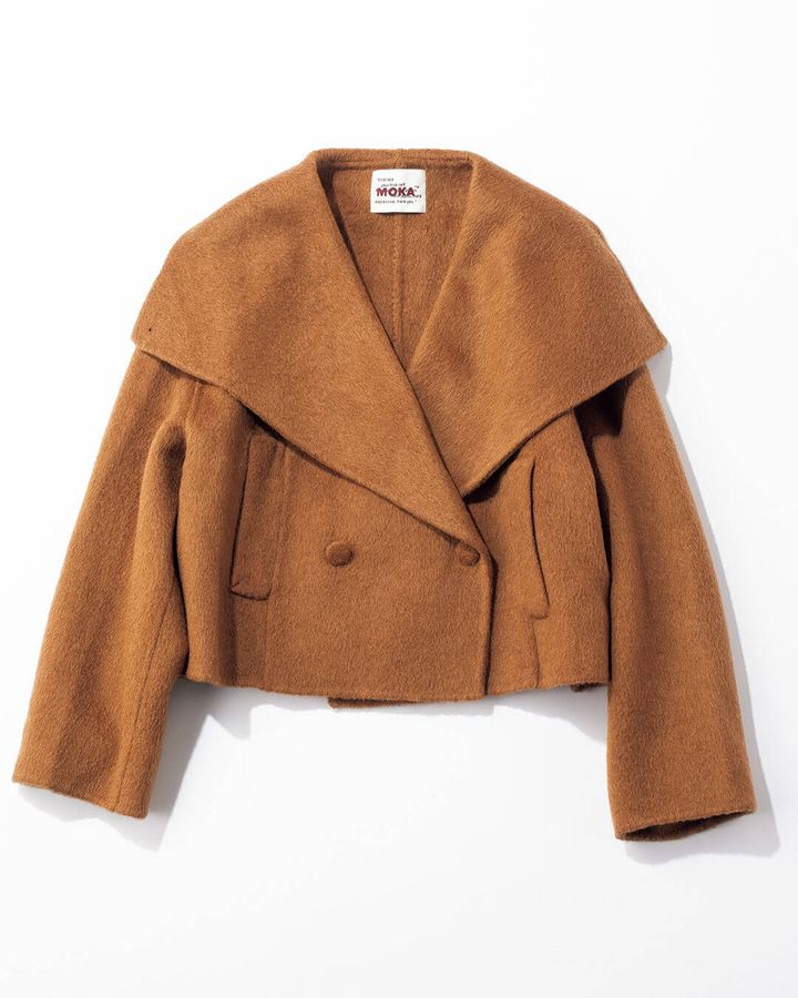コンパクトなシルエットでもウール素材で温かさは抜群。大きなカラーは手持ちのボトムスを華やかに更新するので、忘年会などイベントでも重宝します。